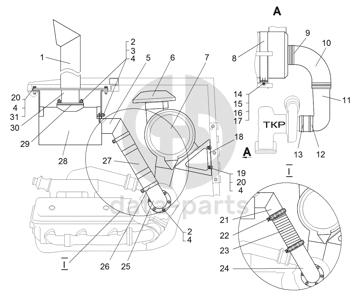 Установка агрегатов систем впуска и выпуска (с воздуш-ным фильтром Europiclon 45 600 92 911) Бульдозер Б14