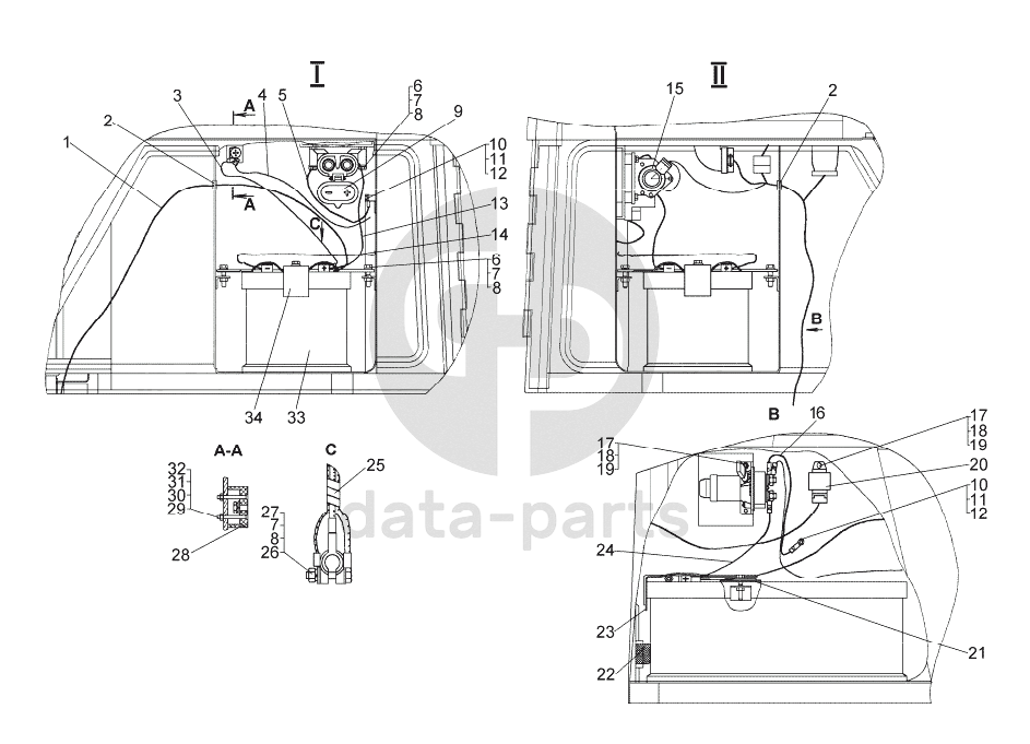 Установка аккумуляторных батарей (для трактора с гидромеханической трансмиссией и электро-стартерной системой пуска)