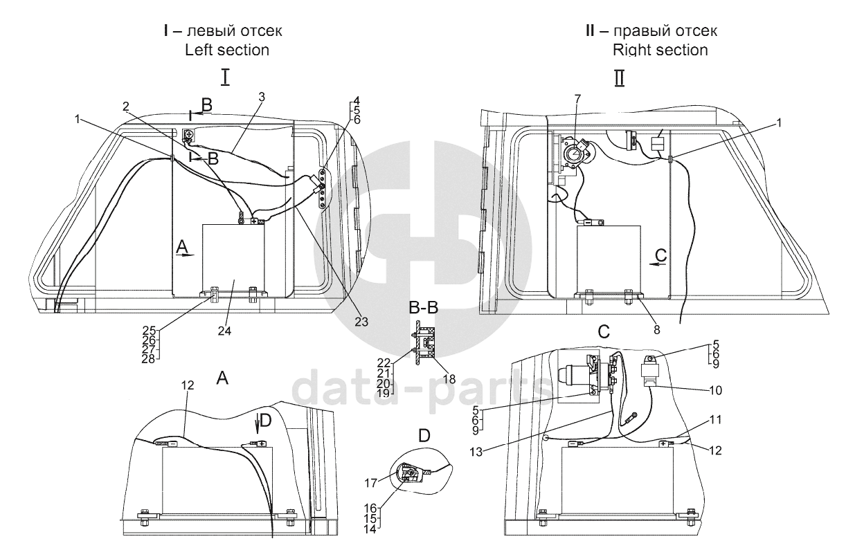 Установка аккумуляторных батарей (для трактора с гидромеханической трансмиссией и пусковым двигателем) Т-10М