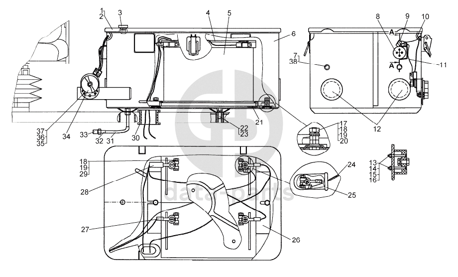 Установка аккумуляторных батарей (для трактора с механической трансмиссией и электростартерной системой пуска)
