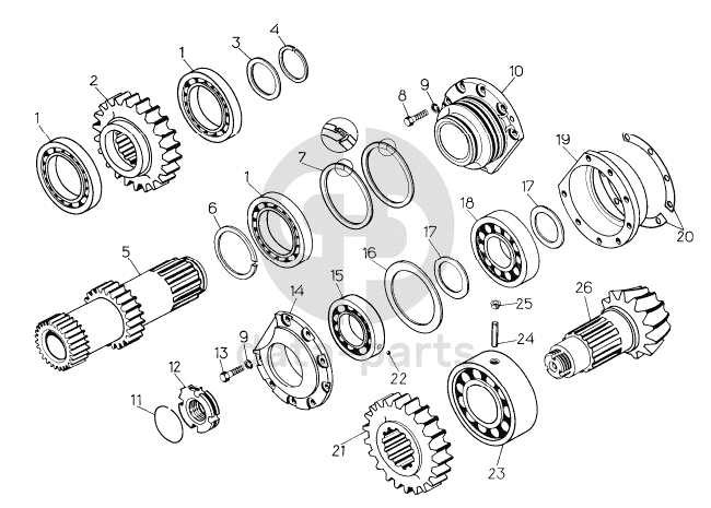 Вал-шестерня с деталями