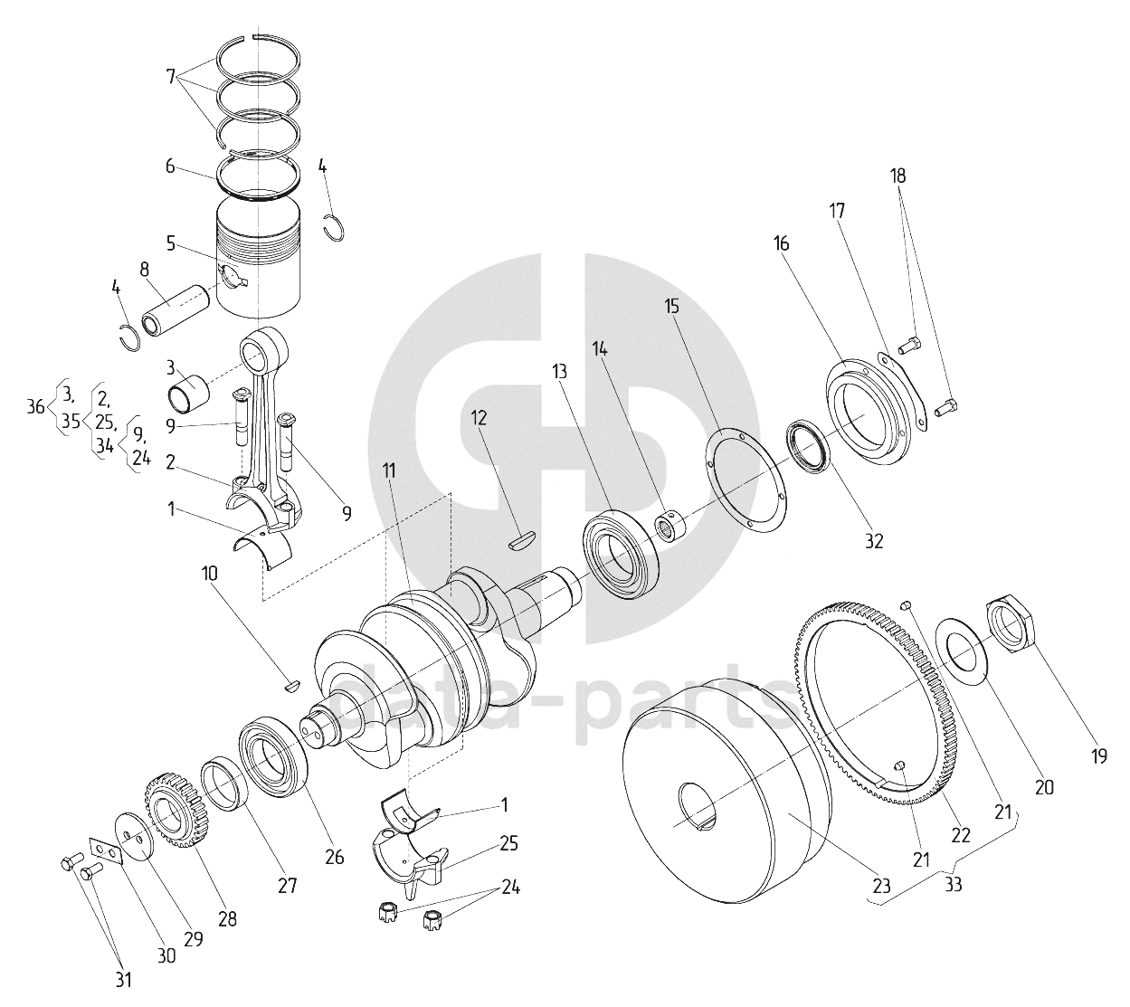 Кривошипно-шатунный механизм пускового агрегата Кран ТР-20, ТР-12