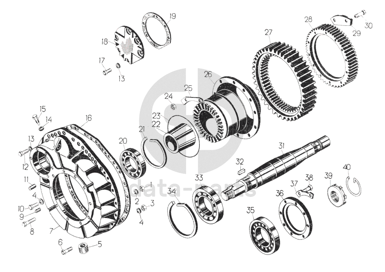 Детали бортовых редукторов (кожух, полуось, подшипники, ступица, шестерни) Т-170М-01
