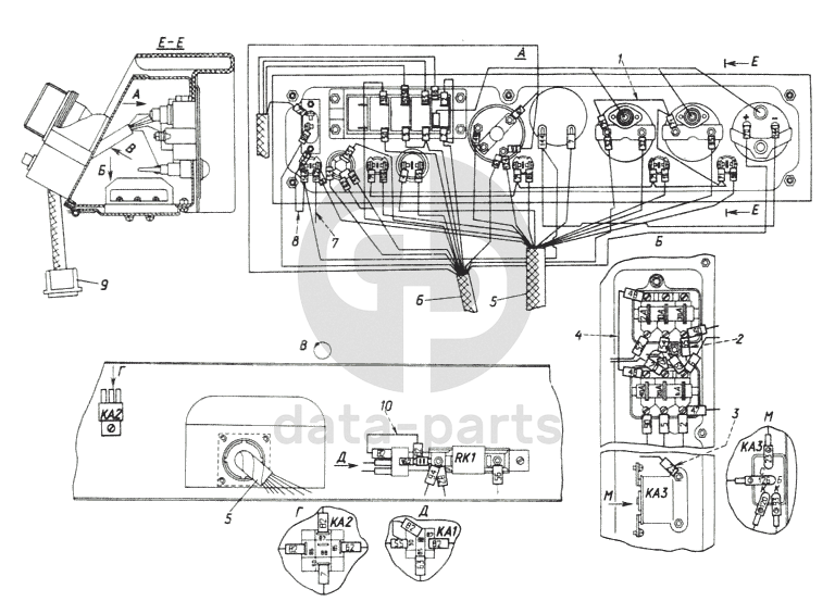 Подсоединение проводов и жгутов к щитку приборов 50-10-693СП (ЭСПП)