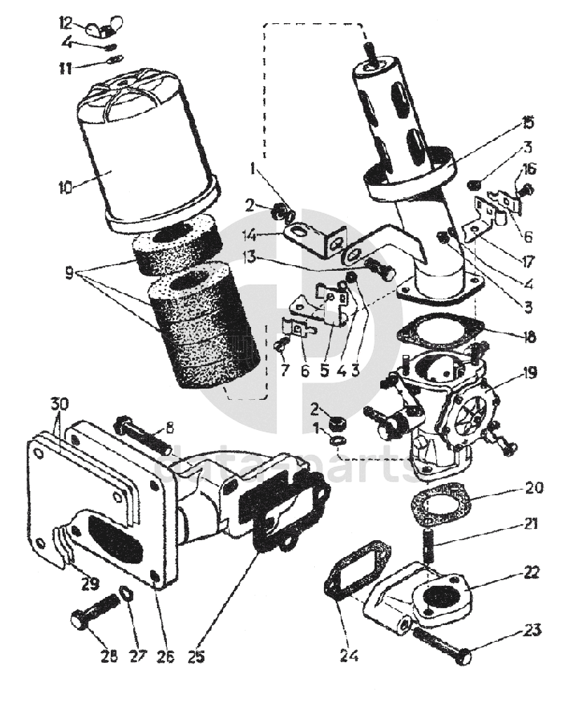 Воздухоочиститель, карбюратор, выхлопной патрубок