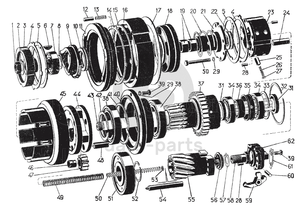 Вал редуктора пускового агрегата с деталями из комплекта 700.12.010.10СП