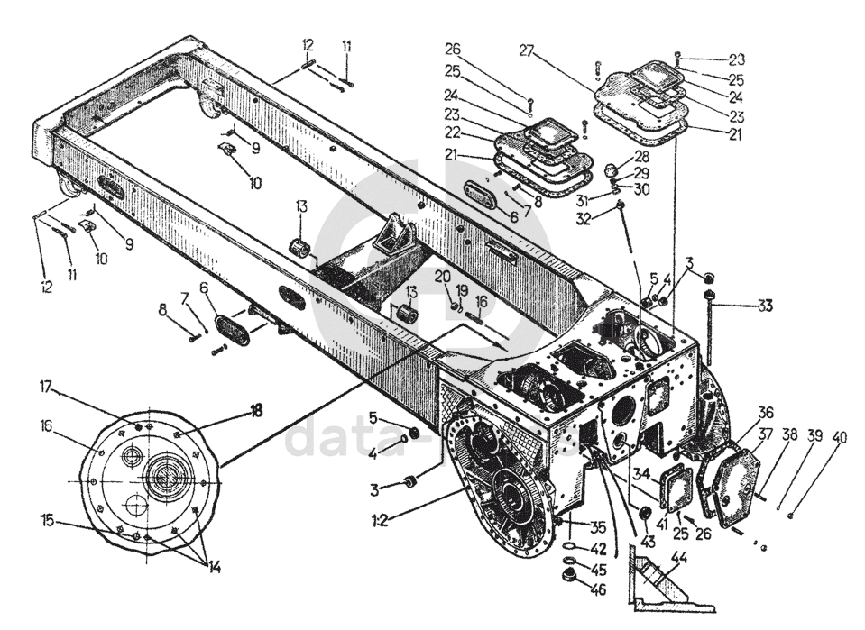 Корпус бортовых фрикционов с деталями трансмиссии