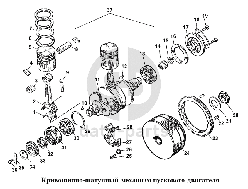 Кривошипно-шатунный механизм пускового двигателя Т-170