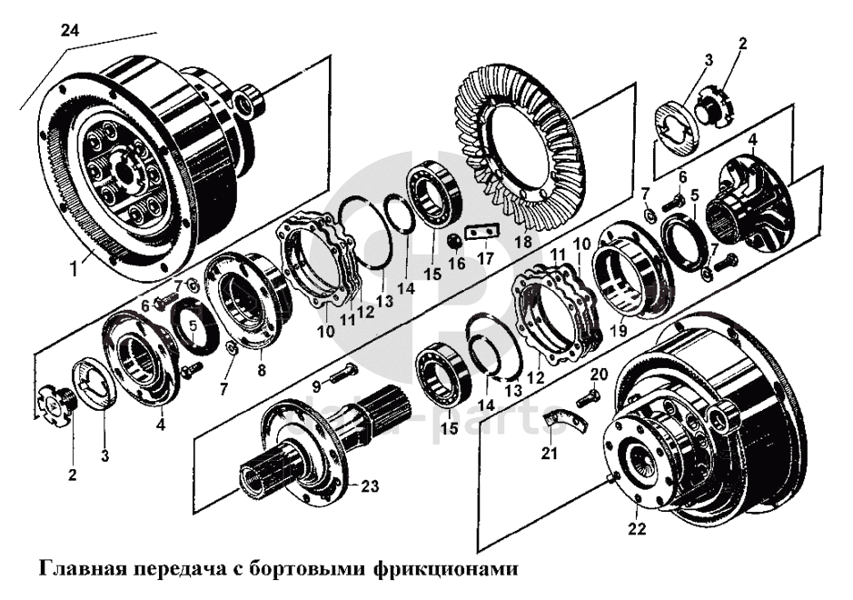 Главная передача с бортовыми Фрикционами Т-170