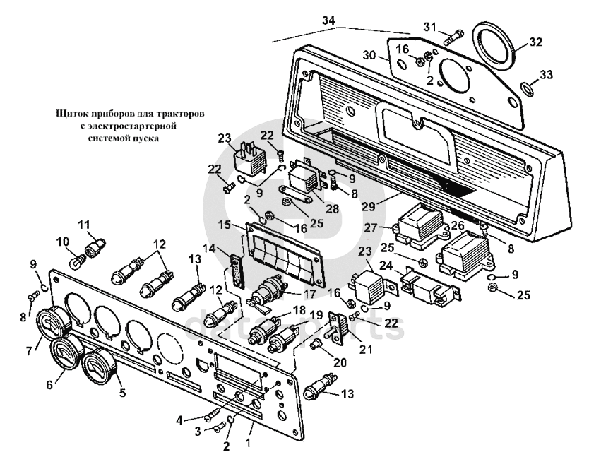 Щиток приборов для тракторов с электростартерной системой пуска дизеля