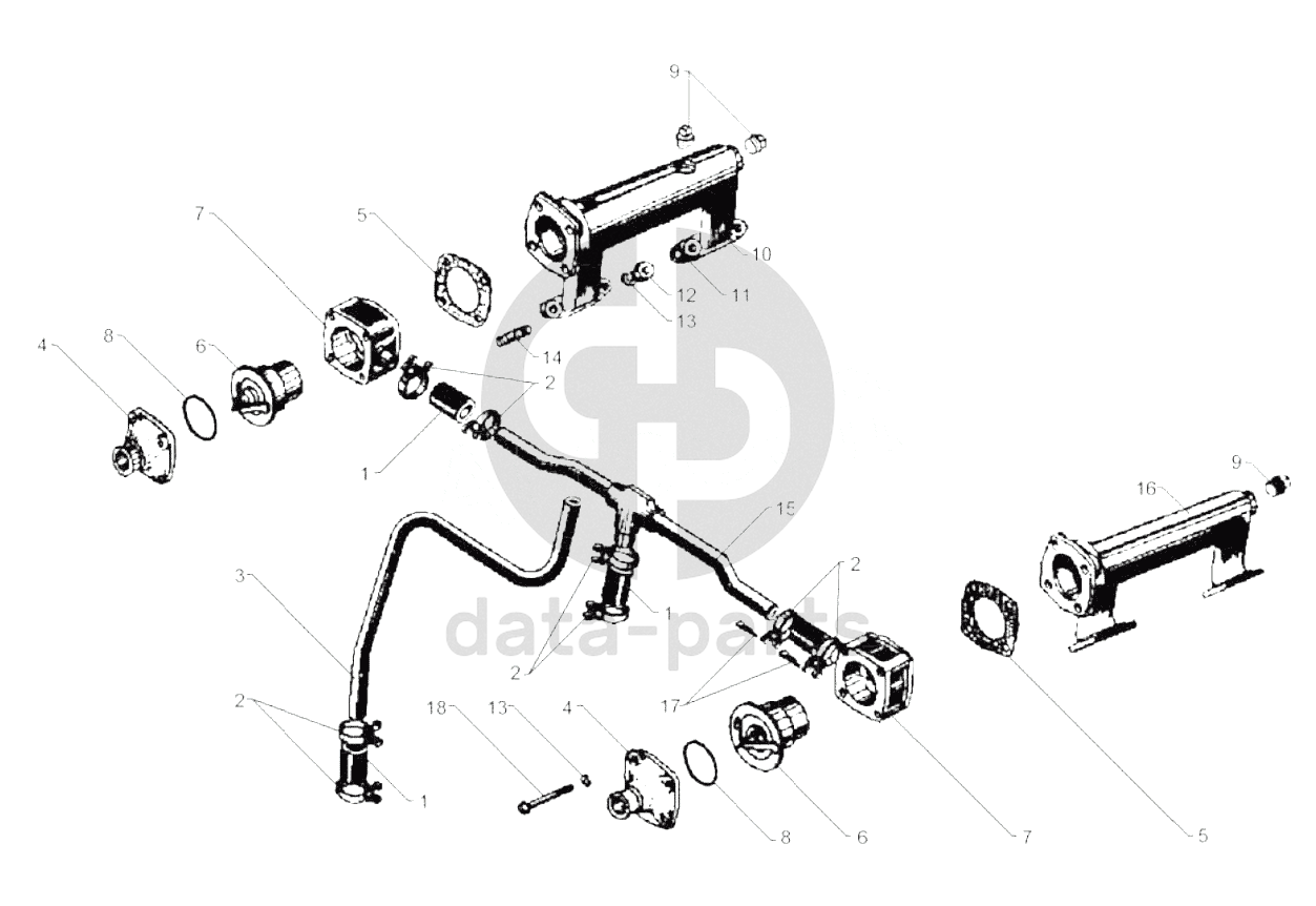 Трубопроводы и термостаты системы охлаждения ЯМЗ-236М2