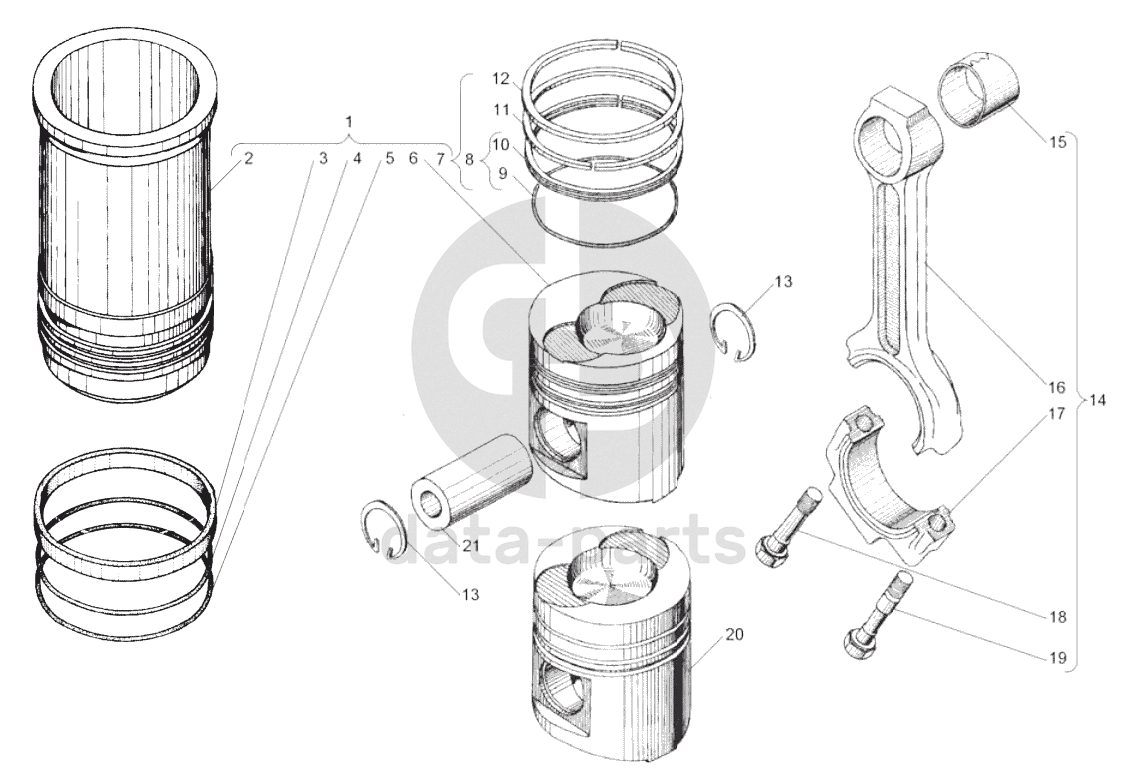 Комплект гильзы, поршня, поршневых и уплотнительных колец