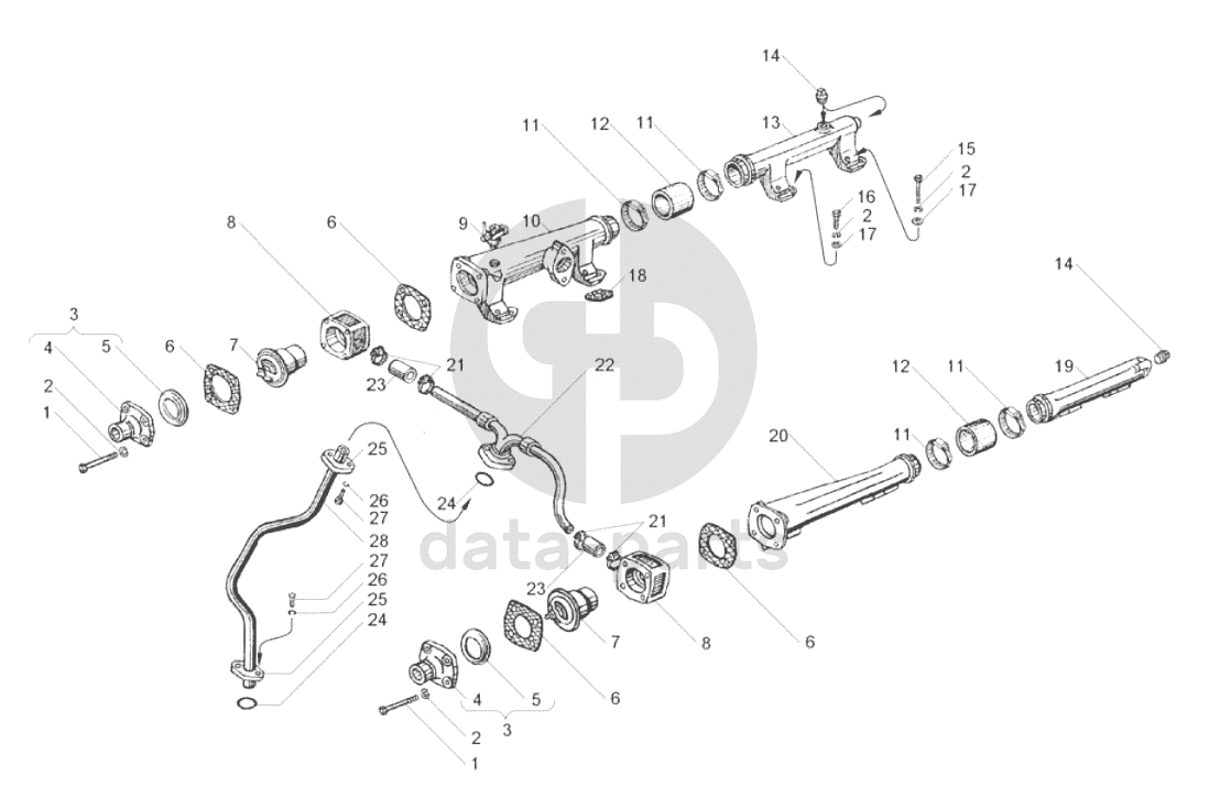 Трубы водяные и термостаты системы охлаждения двигателей с индивидуальными головками цилиндров (только для запасных частей)