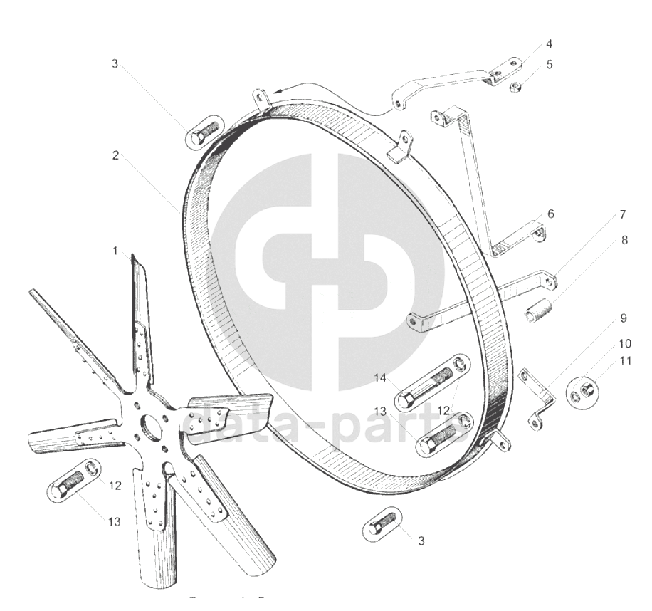 Вентилятор и кожух вентилятора (ЯМЗ-238М2-20, ЯМЗ-238М2-26, ЯМЗ-238М2-38, ЯМЗ-238М2-48)