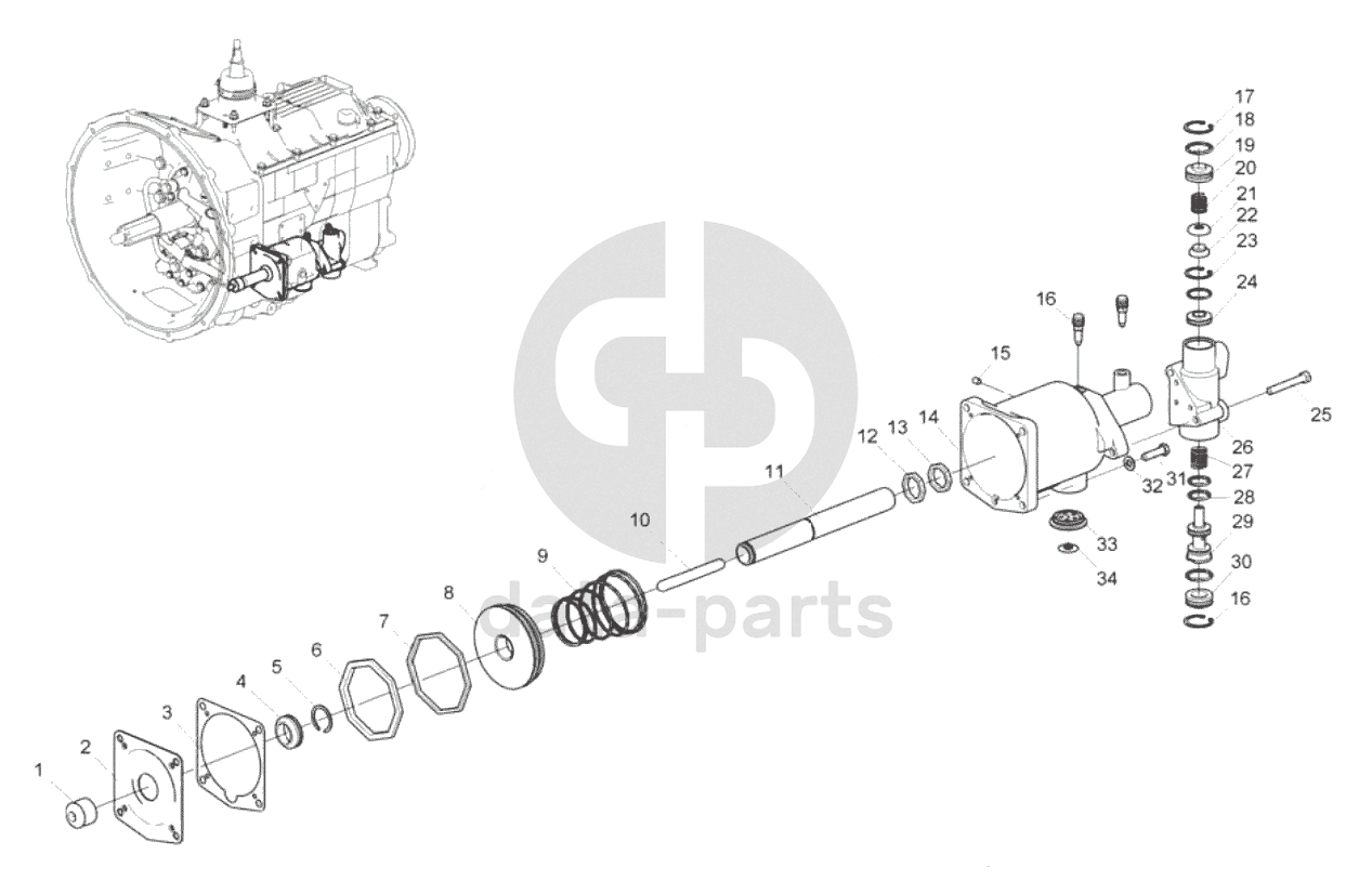 Пневмогидравлический усилитель привода выключения сцепления ЯМЗ-536-100