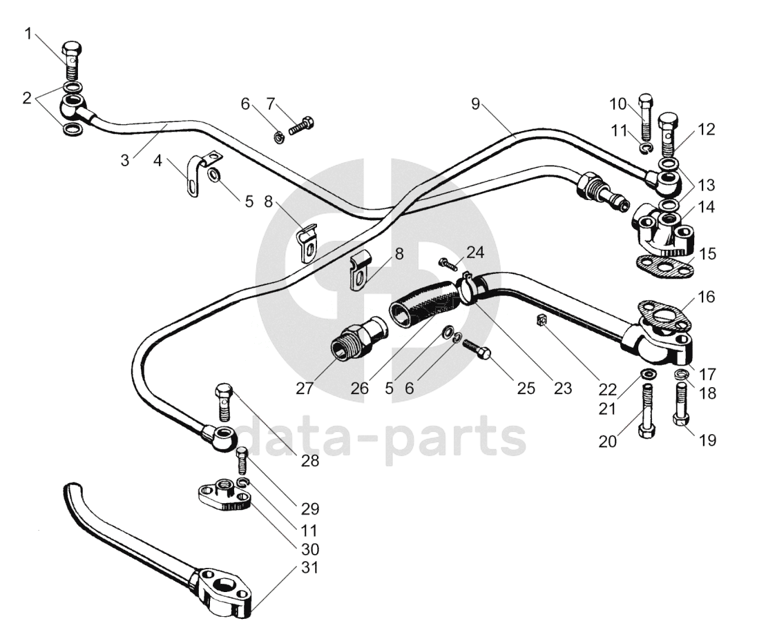 Труба подвода масла к правому турбокомпрессору в сборе