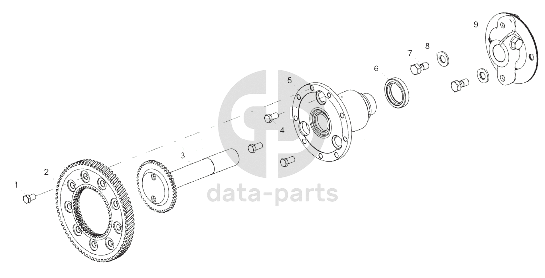 Ось ведомой шестерни с подшипником и маховиком в сборе