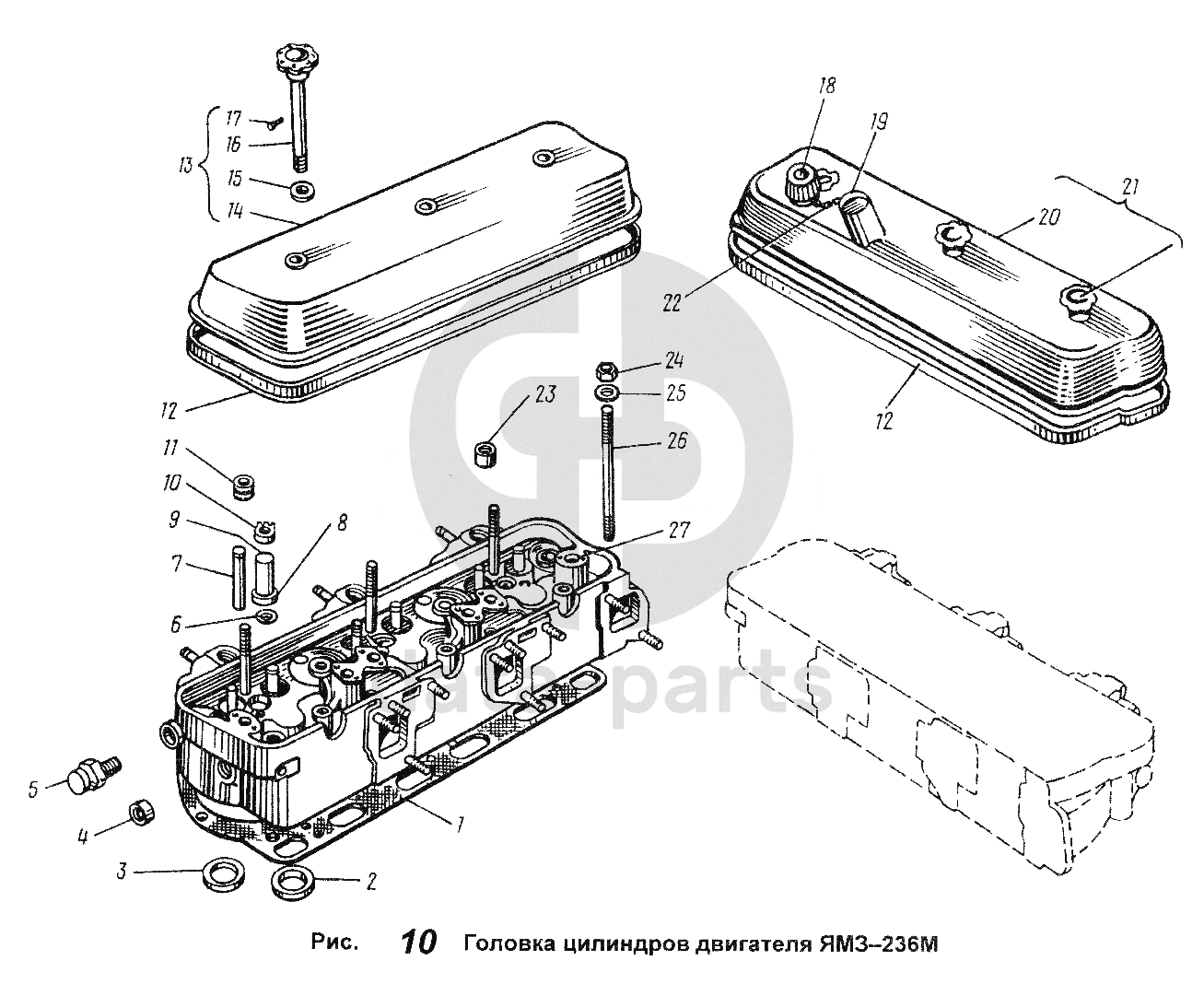 Головка цилиндров двигателя ЯМЗ-236М Общий (см. мод-ции)
