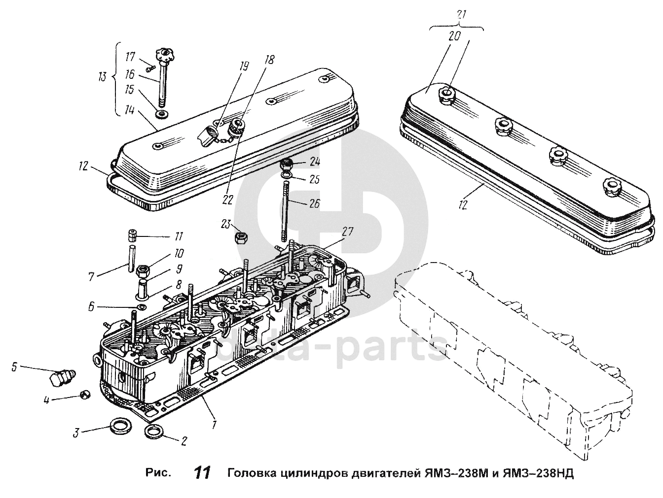Головка цилиндров двигателей ЯМЗ-238М и ЯМЗ-238НД Общий (см. мод-ции)
