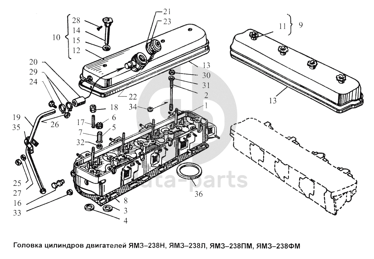 Головка цилиндров двигателей ЯМЗ-238Н, ЯМЗ-238Л, ЯМЗ-238ПМ, ЯМЗ-238ФМ Общий (см. мод-ции)