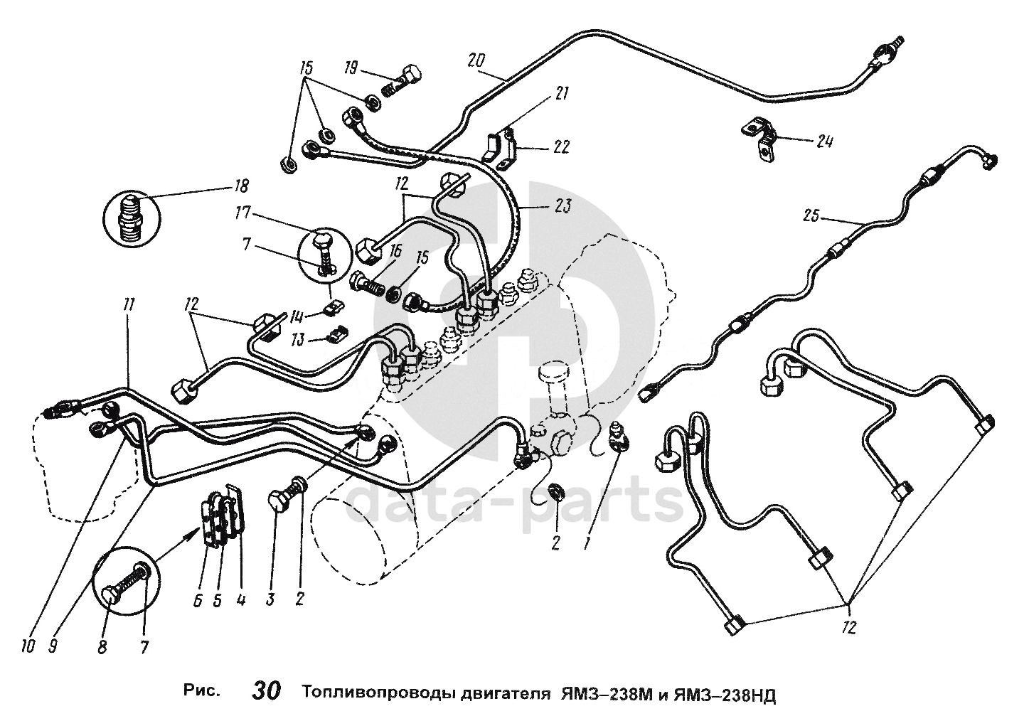 Топливопроводы двигателей ЯМЗ-238М и ЯМЗ-НД Общий (см. мод-ции)