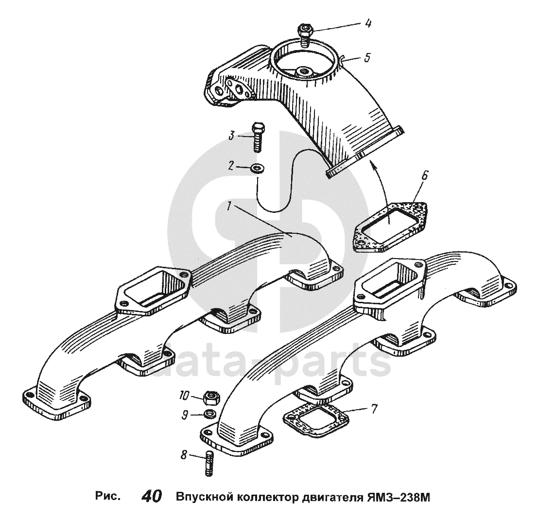 Впускной коллектор двигателя ЯМЗ-238М Общий (см. мод-ции)