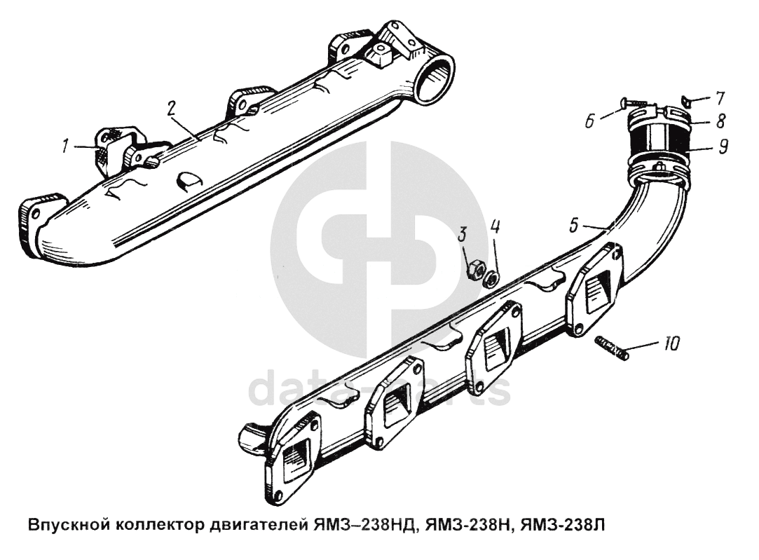 Впускной коллектор двигателя ЯМЗ-238НД, ЯМЗ-238Н, ЯМЗ-238Л