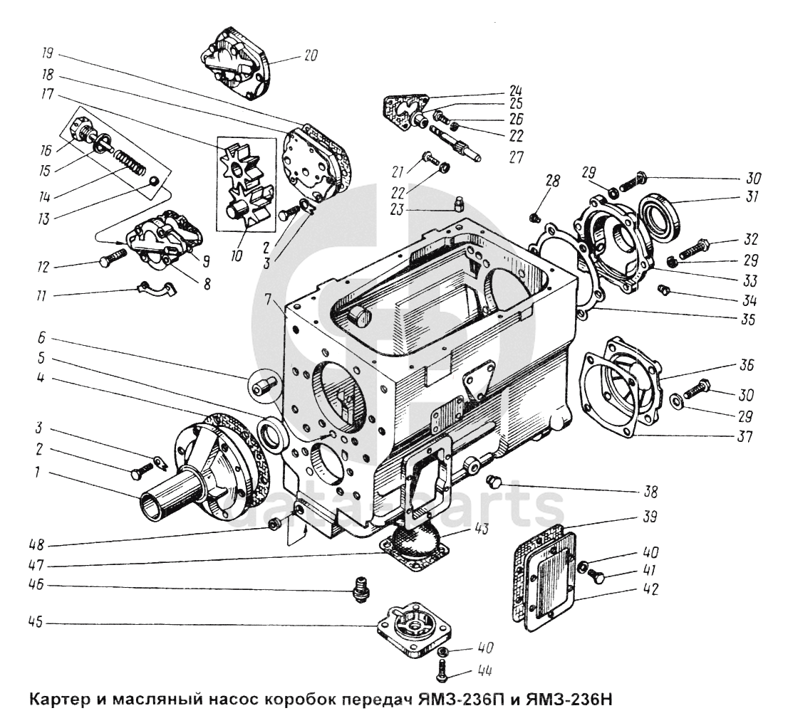Картер и масляный насос коробок передач ЯМЗ-236П и ЯМЗ-236Н Общий (см. мод-ции)