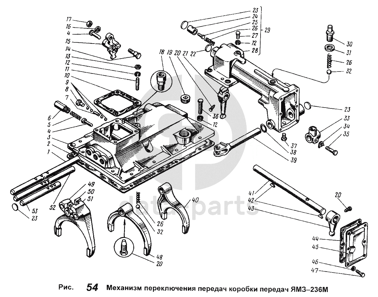 Механизм переключения передач коробки передач ЯМЗ-236М Общий (см. мод-ции)