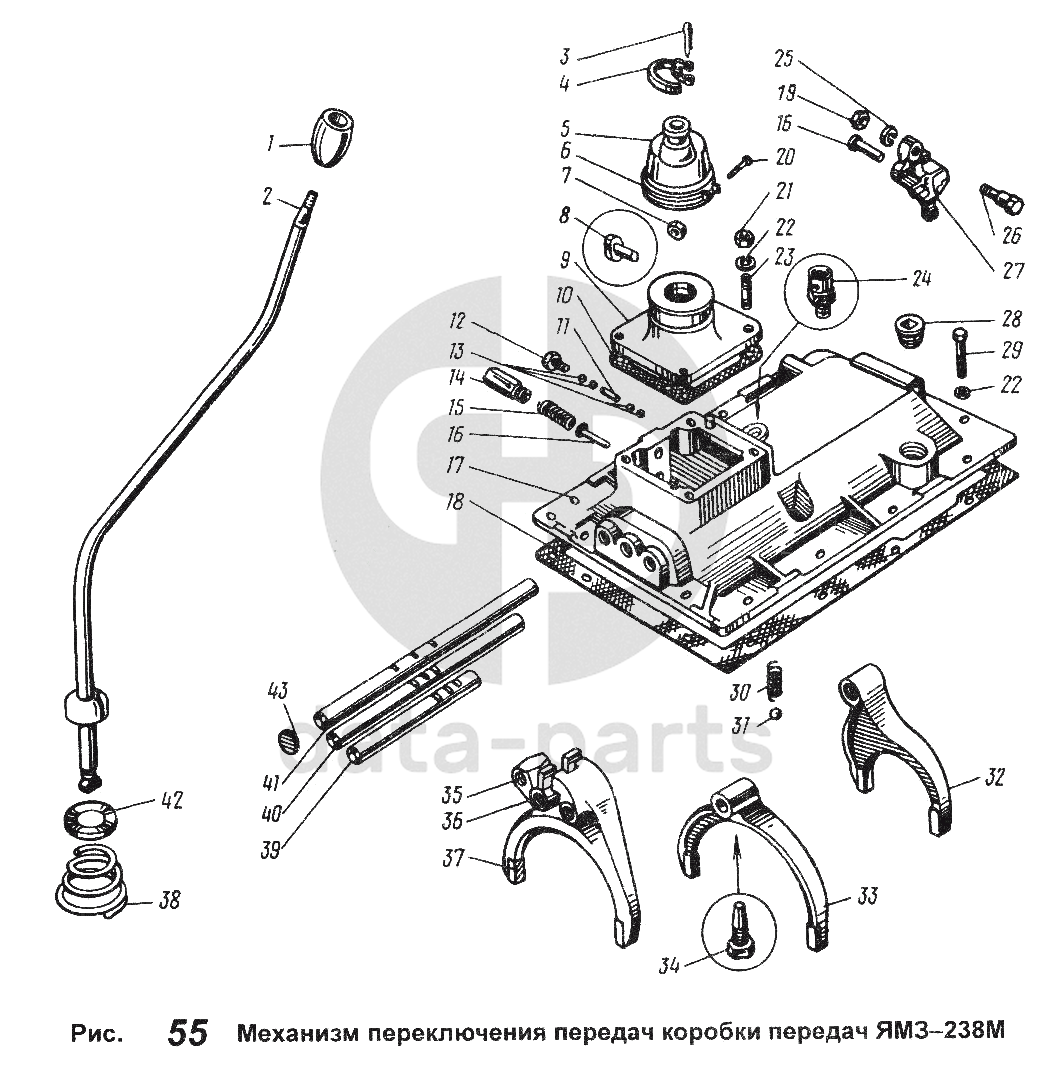 Механизм переключения передач коробки передач ЯМЗ-236Н