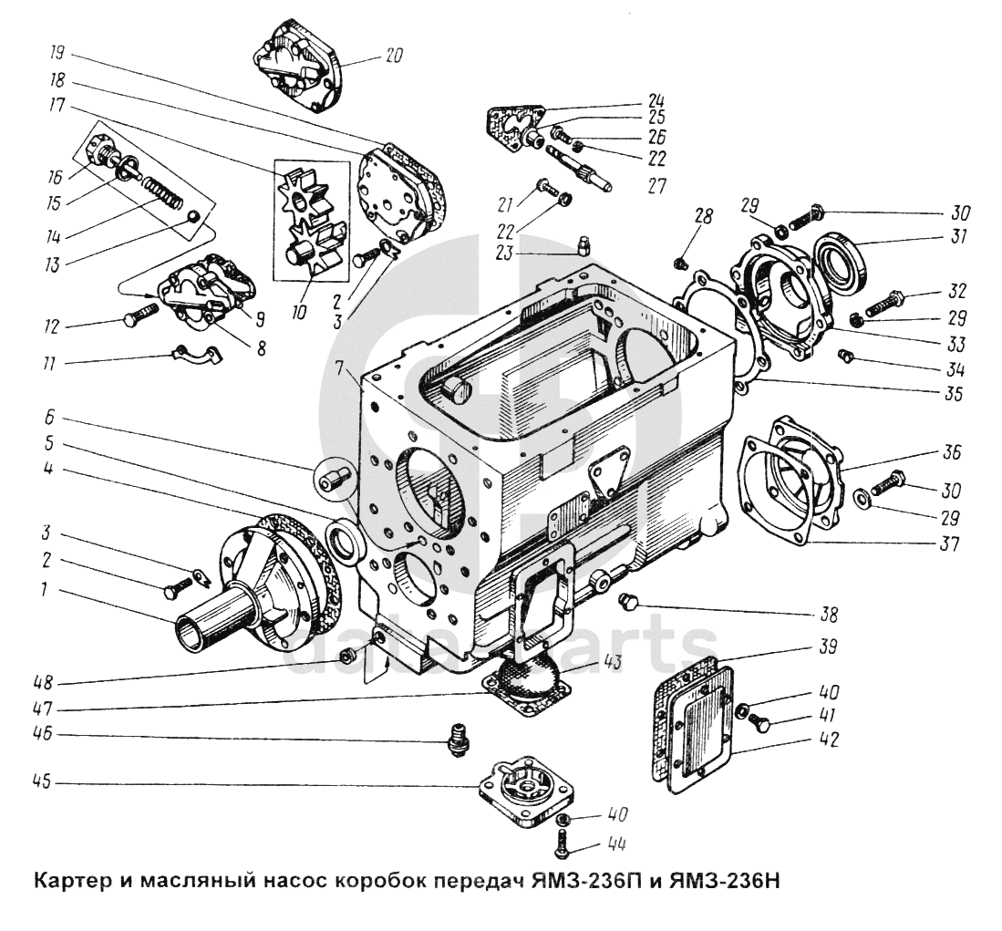 Картер и масляный насос коробок передач ЯМЗ-236П и ЯМЗ-236Н Общий (см. мод-ции)