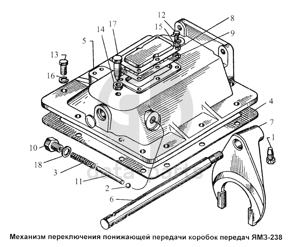 Механизм переключения понижающей передачи коробок передач ЯМЗ-238 Общий (см. мод-ции)