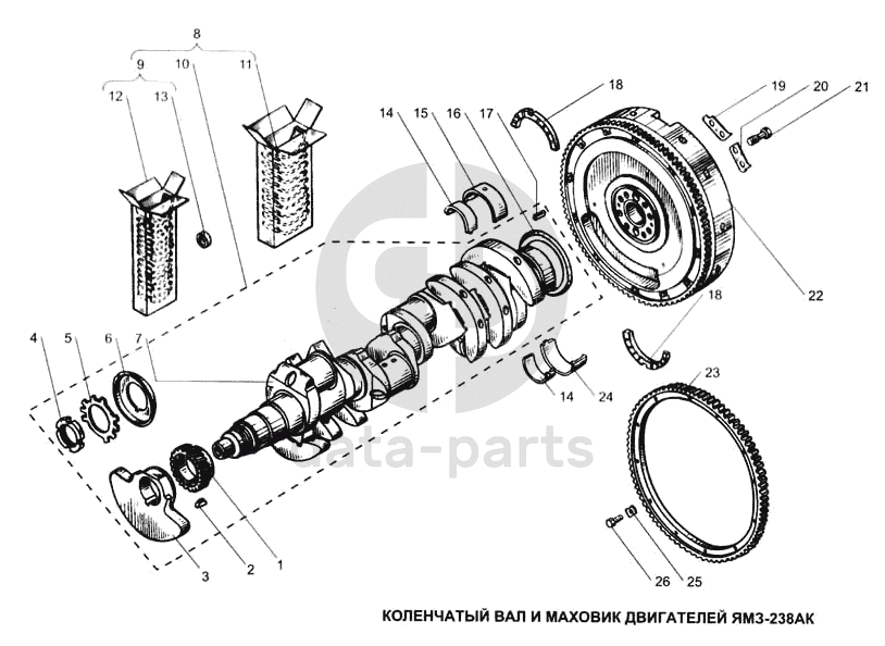 Коленчатый вал и маховик двигателей ЯМЗ238АК