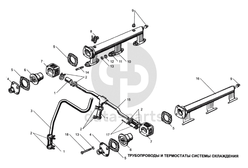 Трубопроводы и термостаты системы охлаждения