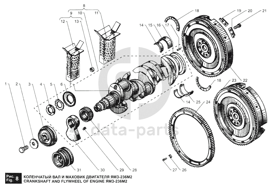 Коленчатый вал и маховик двигателя ЯМЗ-236М2