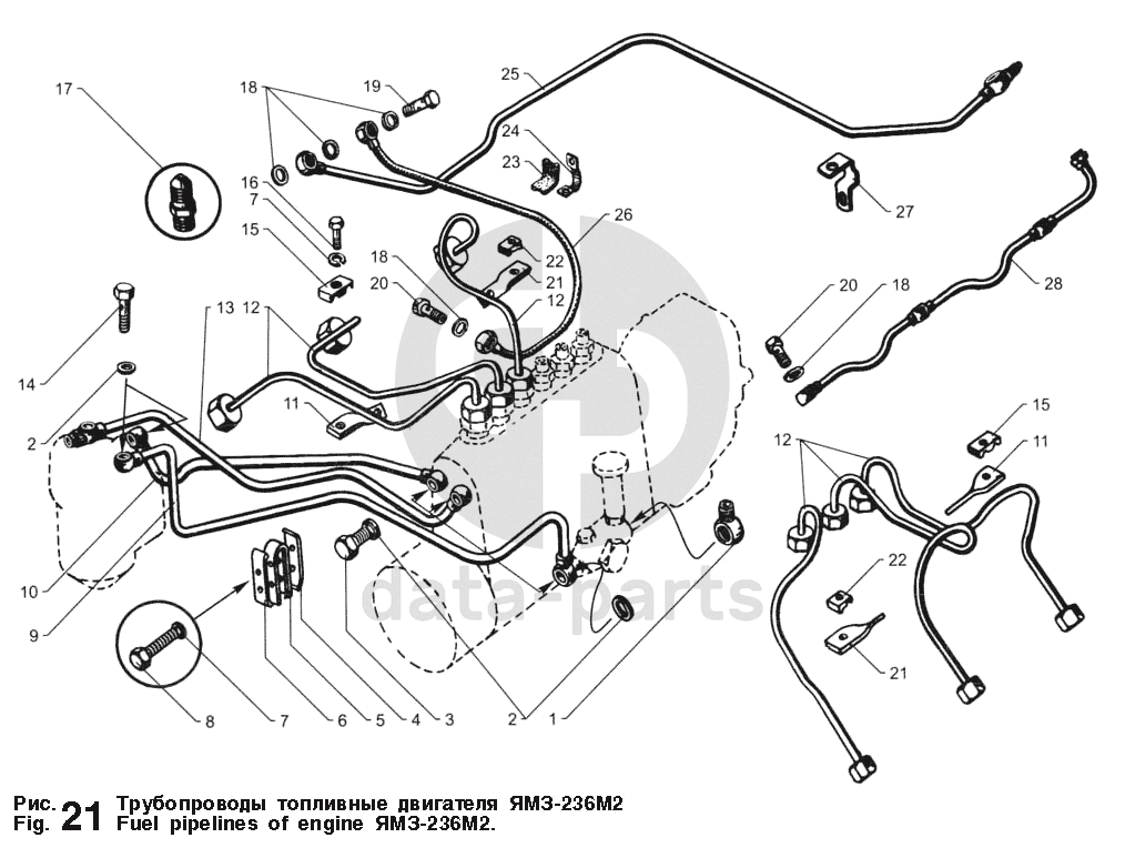 Трубопроводы топливные двигателя ЯМЗ-236М2 ЯМЗ-236 М2 и 238 М2