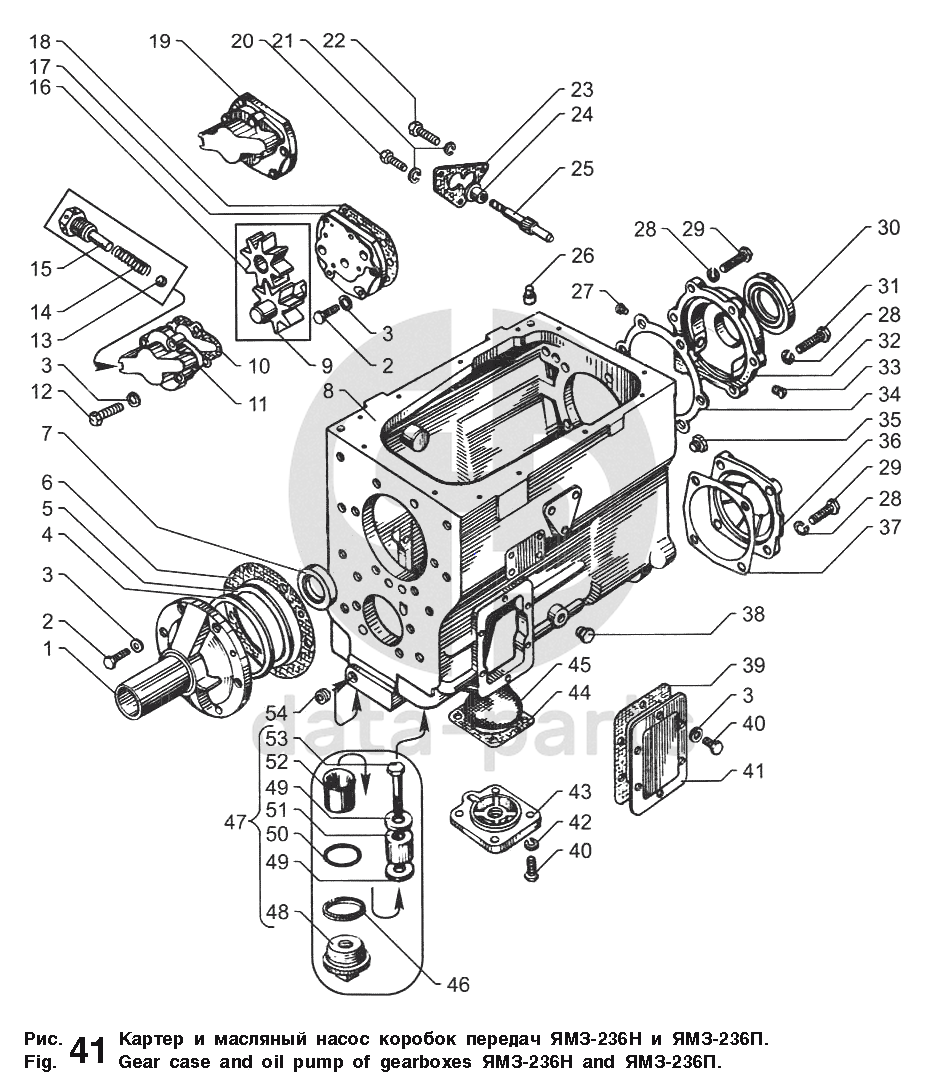 Картер и масляный насос коробок передач ЯМЗ-236Н и ЯМЗ-236П