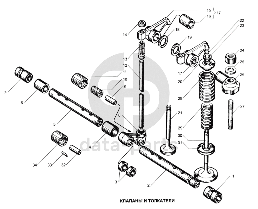 Клапаны и толкатели ЯМЗ-236 НЕ, 236 БЕ, 7601.10