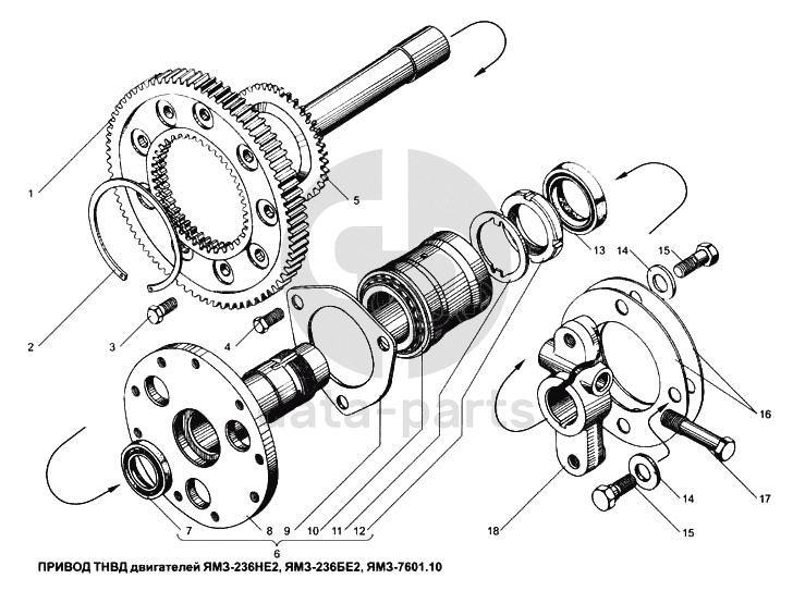 Привод ТНВД двигателей ЯМЗ-236БЕ2, ЯМЗ-7601.10 ЯМЗ-236 НЕ, 236 БЕ, 7601.10
