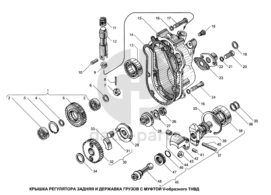 Крышка регулятора задняя и державка грузов с муфтой V-образного ТНВД