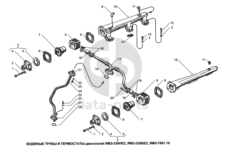 Водяные трубы и термостаты двигателей ЯМЗ-236НЕ2, ЯМЗ-236БЕ2, ЯМЗ-7601.10