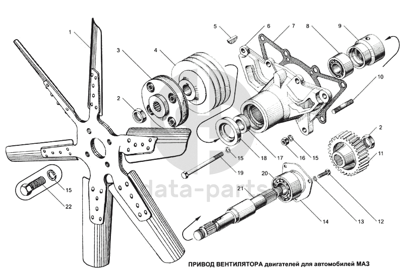 Привод вентилятора двигателей для а/м МАЗ ЯМЗ-236 НЕ, 236 БЕ, 7601.10