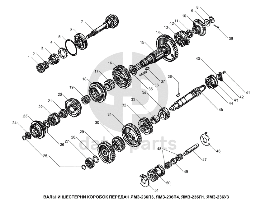 Валы и шестерни коробок передач ЯМЗ-236П3, ЯМЗ-236П4, ЯМЗ-236Л1, ЯМз-236У3 ЯМЗ-236 НЕ, 236 БЕ, 7601.10