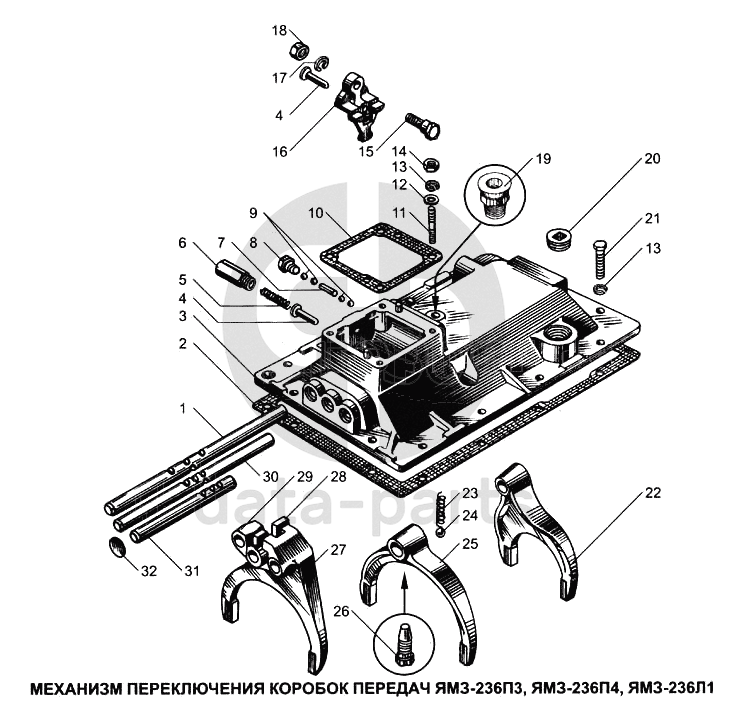 Механизм переключения коробок передач ЯМЗ-236П3, ЯМЗ-236П4, ЯМЗ-236Л1 ЯМЗ-236 НЕ, 236 БЕ, 7601.10