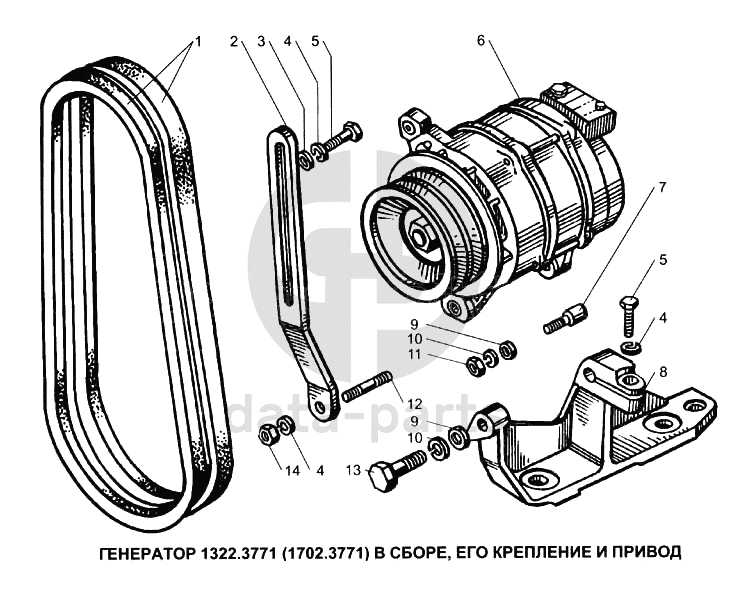 Генератор 1322.3771 (1702.3771) в сборе, его крепление и привод
