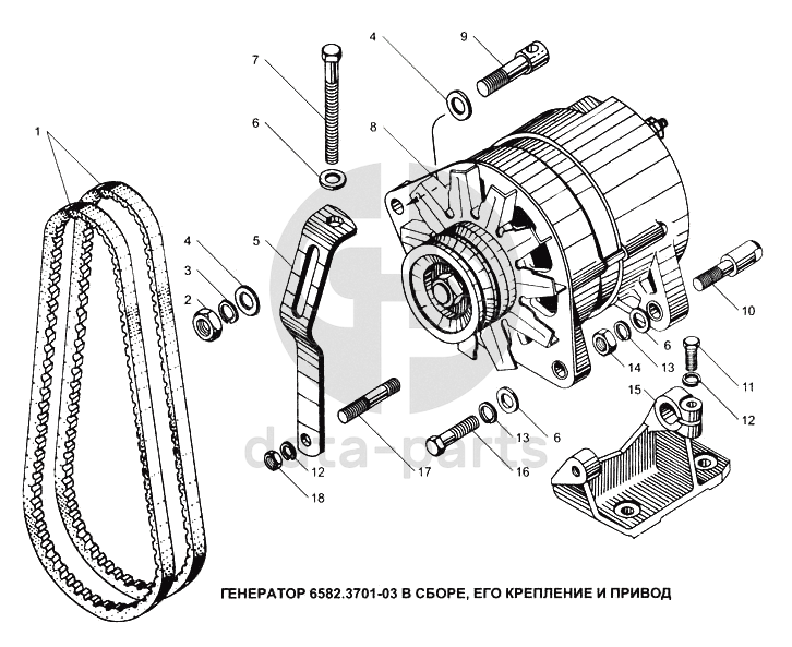 Генератор 6582.3701-03 в сборе, его крепление и привод