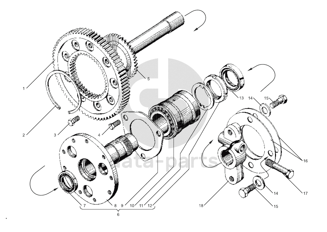 Ось ведомой шестерни с подшипником и манжетой в сборе