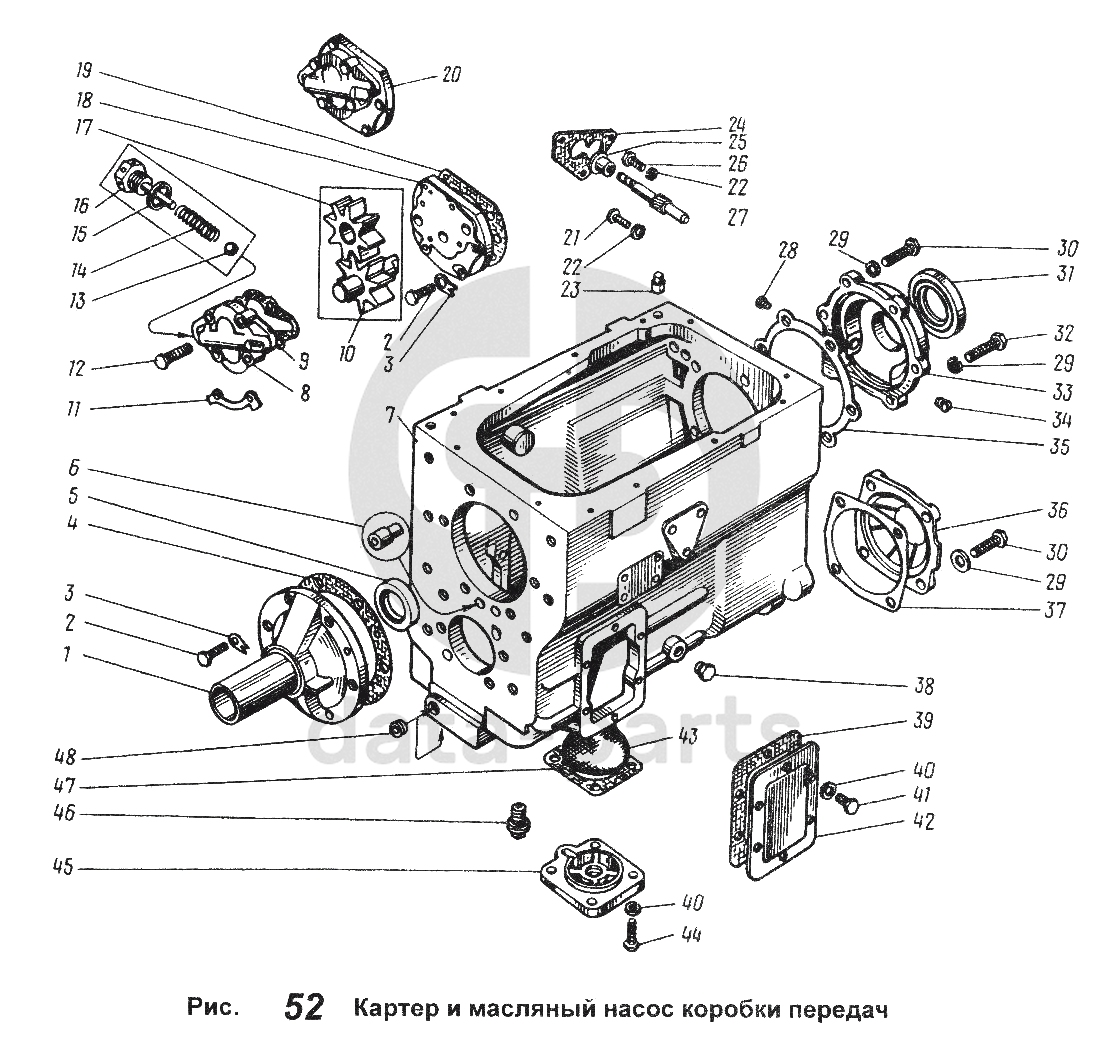 Картер и масляный насос коробки передач ЯМЗ-238 ГМ