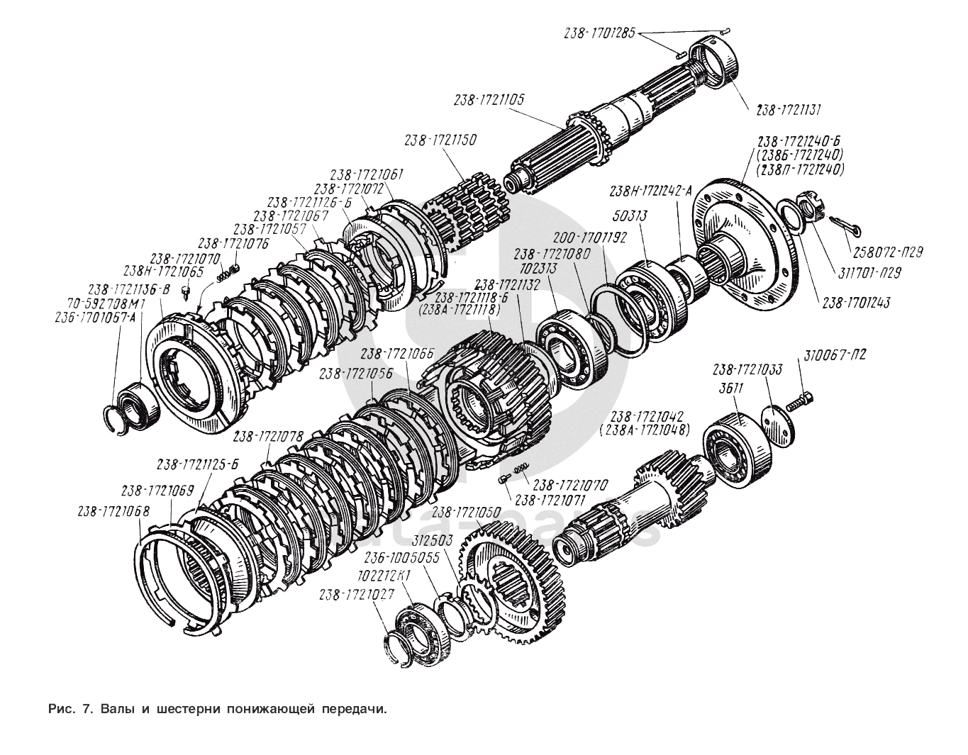 Валы и шестерни понижающей передачи ЯМЗ-238 ГМ