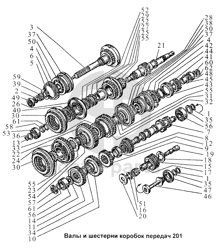Валы и шестерни коробок передач 201 ЯМЗ-238 ГМ